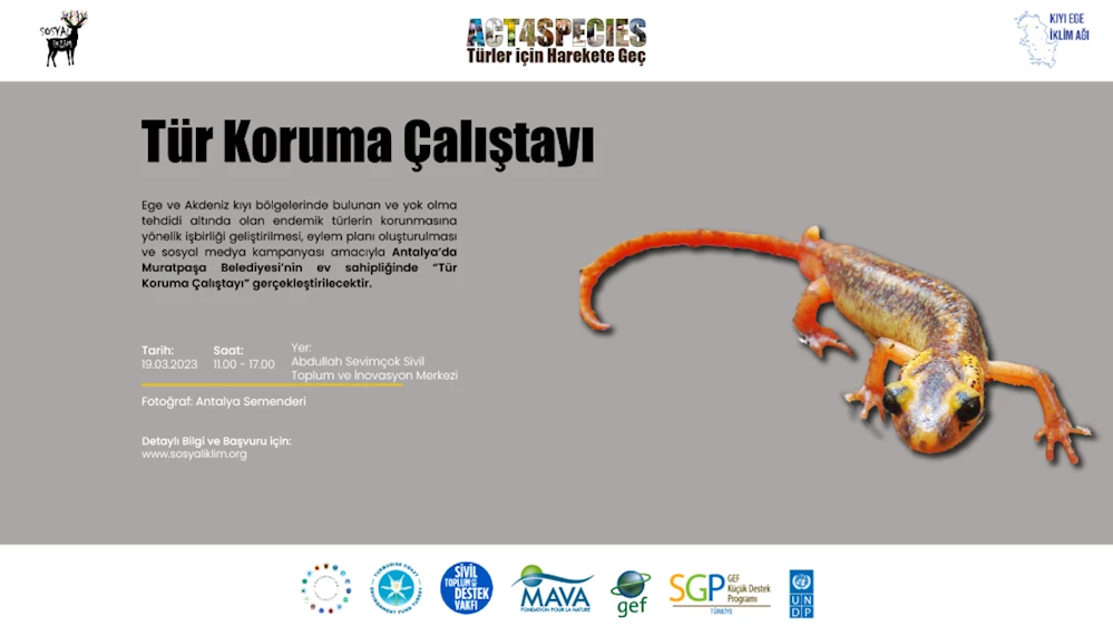 Pazar günün gerçekleştirilecek çalıştayın afişinde ise Türkiye’de sadece Antalya’da bulunan orman içi, taşlık ve kayalık alanlarda yaşayan 14 santimetrelik semenderin fotoğrafı kullanıldı.