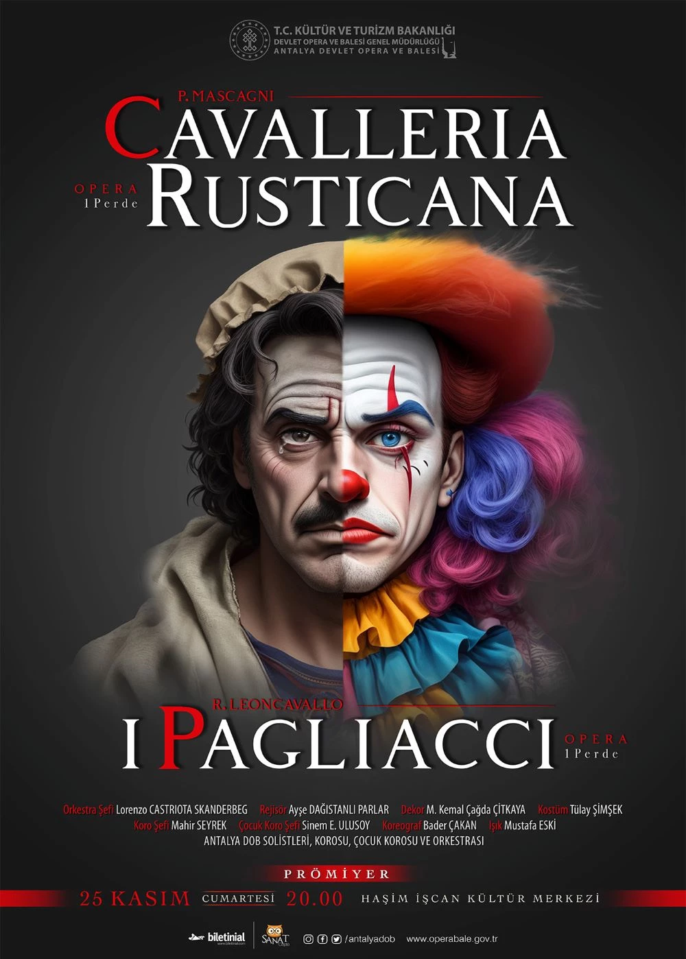 Antalya Devlet Opera ve Balesi 25 Kasım Cumartesi akşamı saat: 20.00’de opera evlerinin vazgeçilmez eserlerinden tek perdelik ‘Cavalleria Rusticana’ ve ‘I Pagliacci’ operalarının prömiyerini gerçekleştirecek.