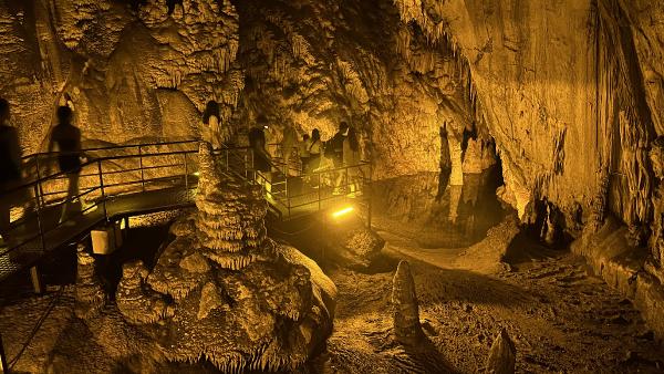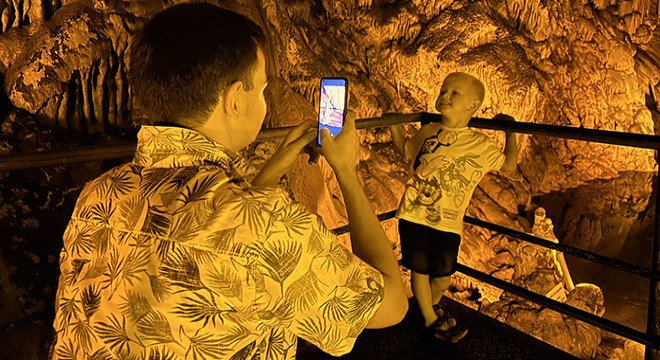 Antalya'nın Alanya ilçesinde içindeki sarkıt, dikit ve traverten oluşumlardan oluşan Dim Mağarası, 18 derece sıcaklığıyla yaz aylarında turistlerden uğrak noktası oldu.