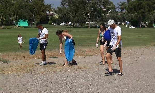 Antalya’nın Manavgat ilçesinde bulunan bir tatil köyünde tatil yapan turistler ve çalışanlar sahili temizledi.