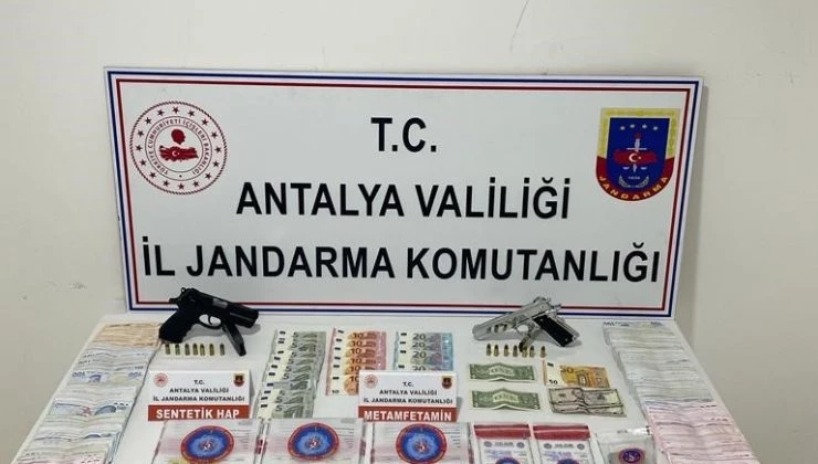 Antalya İl Jandarma Komutanlığı Manavgat İlçe Jandarma Komutanlığı ekipleri tarafından, Manavgat Cumhuriyet Başsavcılığı talimatları hedefinde gerçekleştirilen operasyonda şüpheli, kullandığı araç içerisinde yakalanırken, şahsa ait 2 ev ve aracında yapılan aramalarda 510 gram metamfetamin, 374 adet ecstacy sentetik hap, 1 adet hassas terazi ve 2 adet 9mm tabanca ele geçirildi.