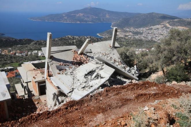 Antalya'nın Kaş ilçesinde kaçak yapılarla mücadele devam ediyor. Bu çerçevede Likya Yolu üzerinde deniz manzaralı yüzme havuzlu 2 yapının yıkım işlemine başlandı.