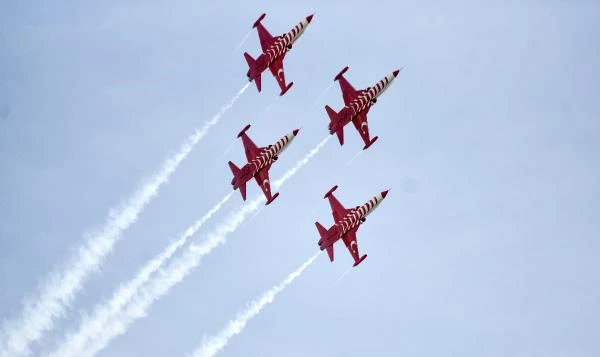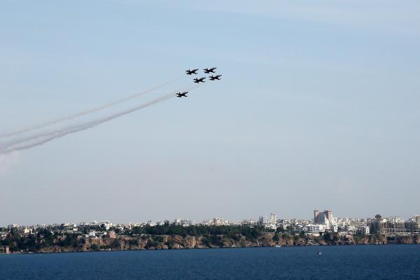 Antalya'da, Türk Hava Kuvvetleri'ne bağlı akrobasi timi Türk Yıldızları, 'Ata'ya Saygı' uçuşu yaptı.
