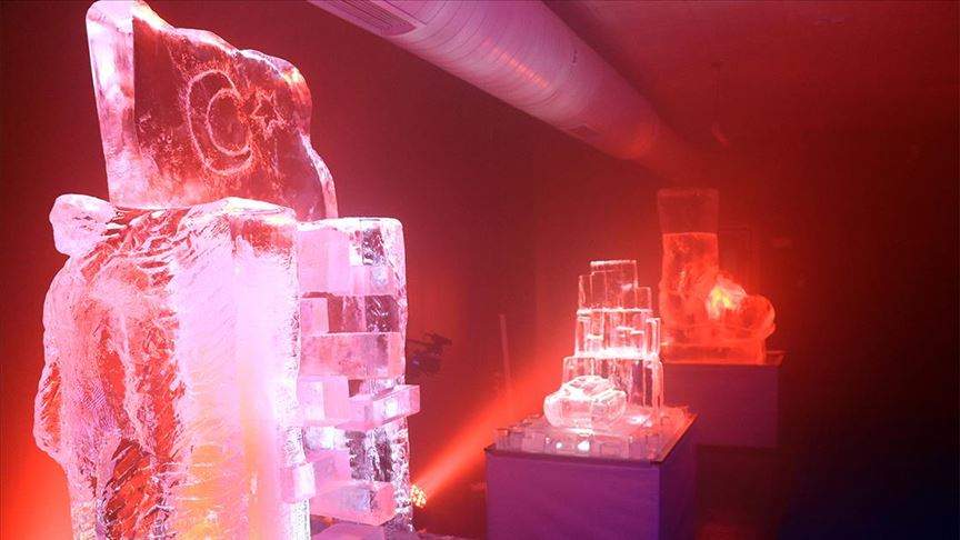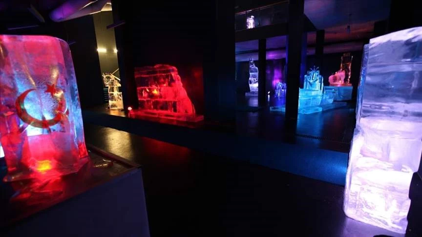 Özel ışık sistemleriyle aydınlatılan buzdan heykellerin yer aldığı müze, içerideki soğuk hava dolayısıyla montlarını giyerek ziyaret edenleri adeta kutuplarda yolculuğa çıkarıyor.