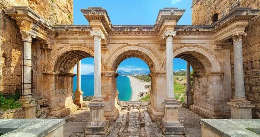Antalya, Akdeniz kıyısında, tarih boyunca birçok medeniyete ev sahipliği yapmıştır. Roma, Bizans ve Selçuklu dönemlerine ait izler taşıyan şehir, bu köklü geçmişiyle dikkat çekiyor. Şehrin simgelerinden biri olan Hadrian Kapısı, Roma İmparatoru Hadrian’ın şehri ziyaret ettiği dönemde yapılmıştır. Ayrıca, Toros Dağları'nın eteklerinde yer alan Termessos Antik Tiyatrosu, antik çağın izlerini yaşamanızı sağlar. Aspendos Antik Tiyatrosu ise dünyanın en iyi korunmuş antik tiyatrolarından biridir ve etkileyici yapısıyla ilgi çeker.