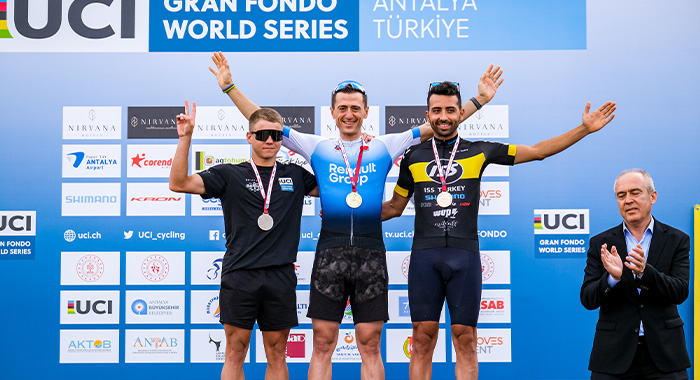 “Hayatımda 1,5 metre payın olsun” sloganı ile gerçekleştirilen UCI Nirvana Gran Fondo World Series Antalya’da 20 Kasım Pazar günü, 68 kilometrelik kısa parkur yarışındaki mücadele nefes kesti. Toplamda 423 sporcunun yarıştığı kısa parkurda kadınlarda dokuz, erkeklerde on farklı yaş kategorilerinde 23 kadın, 30 erkek sporcu madalya kazandı.