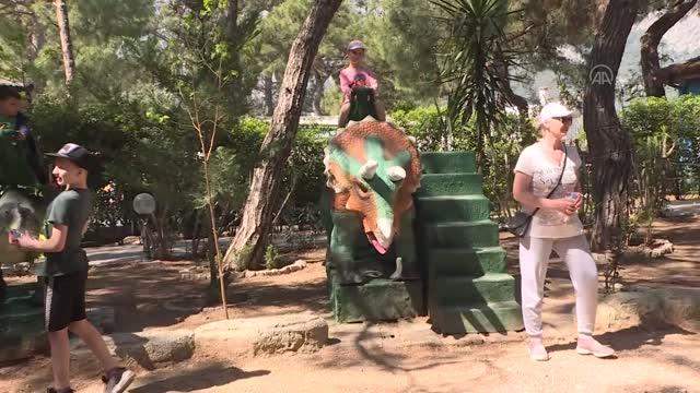 Kemer ilçesinin Göynük Mahallesi'nde yer alan ve içerisinde dinozor maketleri, çocuk eğlence ile aktivite alanlarının yer aldığı Dinopark'a savaş mağduru ailelerin çocukları ebeveynleri, yetim çocuklar ise refakatçileriyle geldi.