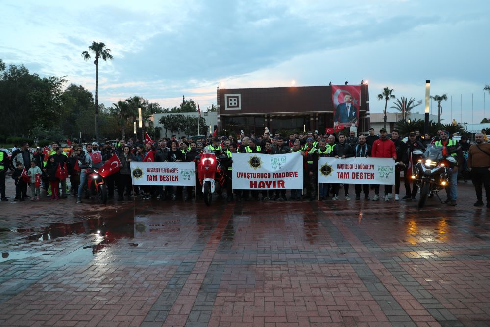 Eğitim ve bilgilendirme çalışmaları kapsamında Antalya Motosiklet Kulüpleri ile birlikte gerçekleştirilen etkinlikte, 300 motosiklet sürücüsü; anne ve anne adaylarının uyuşturucu ile mücadele farkındalığına dikkat çekmek için “En İyi Narkotik Polisi Anne” ve “Antalya Uyuşturucuya Hayır Diyor” sloganları eşliğinde konvoy oluşturarak seslerinin tüm Türkiye’ye duyurdular.