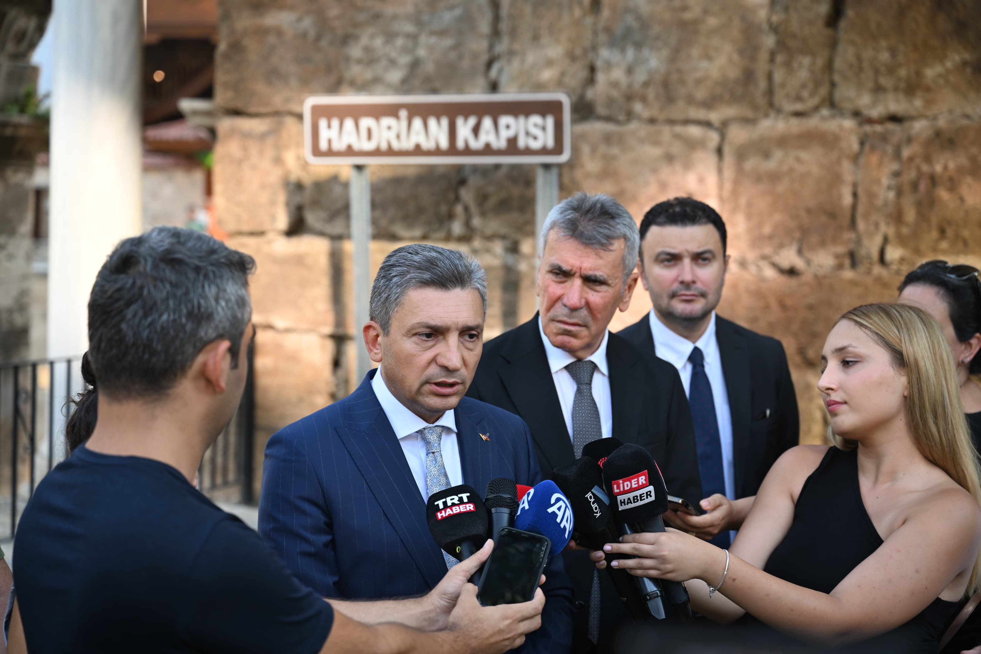 Yapılan çalışmaları inceledikten sonra basın mensupları ile bir araya gelen Vali Şahin, Hadrian Kapısı’nda uzun süredir bakım ve yenileme çalışmasının yapılmadığını ifade ederek, “Aradan geçen yıllarda ciddi bir kirlenme, lekelenme ve bitki çoğalması oluşmuş. 2000 yıllık tarihi eserimizi korumak için çok hassas çalışıyoruz. Antalya Valiliği olarak bu ikonik kapımızı koruyacak 3 aşamalı bir çalışma planı hazırladık. Şu an birinci aşama üzerinde çalışıyoruz. İlk etapta, kapıyı kaplayan bitkiler temizlendi. Bitki önleyici özel losyonlarla taş yüzeylerin korunması ve basınçlı suyla yıkama işlemleriyle kapının temizliği tamamlandıktan sonra, saf suyla hassas bir temizlik yapılacak. Son aşamada ise taş yüzeylere özel bir kaplama malzemesi sürülecek.“ dedi.