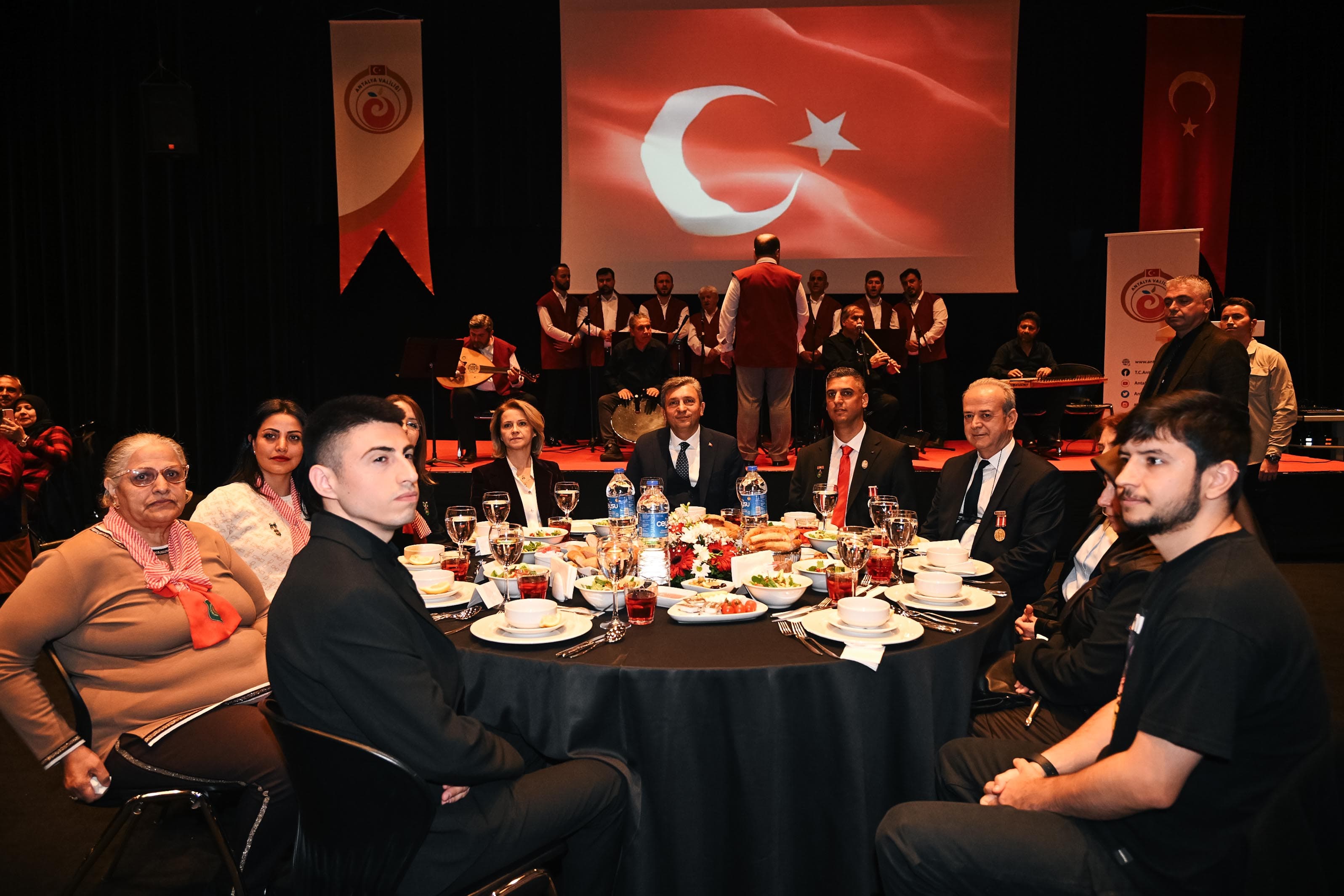 Antalya Valiliği tarafından düzenlenen iftar yemeğine Vali Hulusi Şahin ve Eşi Ebru Şahin’in yanı sıra Büyükşehir Belediye Genel Sekreteri Cansel Çevikol Tuncer, İl Jandarma Komutanı Tuğgeneral Tarık Hekimoğlu, İl Emniyet Müdürü Orhan Çevik, şehit aileleri ve gaziler katıldı.