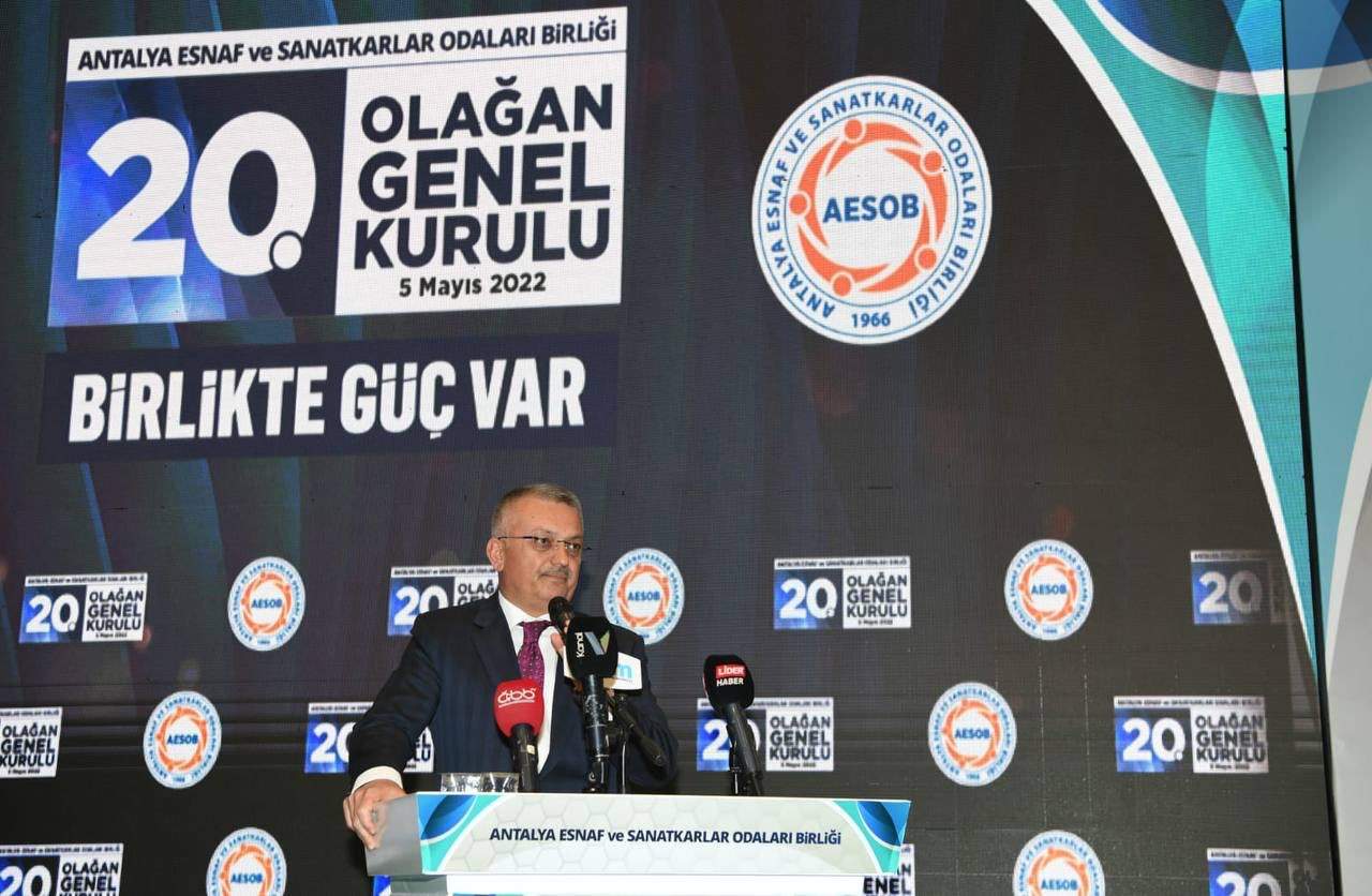 Antalya Valisi Ersin Yazıcı, Antalya Esnaf ve Sanatkârlar Odaları Birliği’nin (AESOB) 20’nci Olağan Genel Kurul Toplantısı’na katıldı.