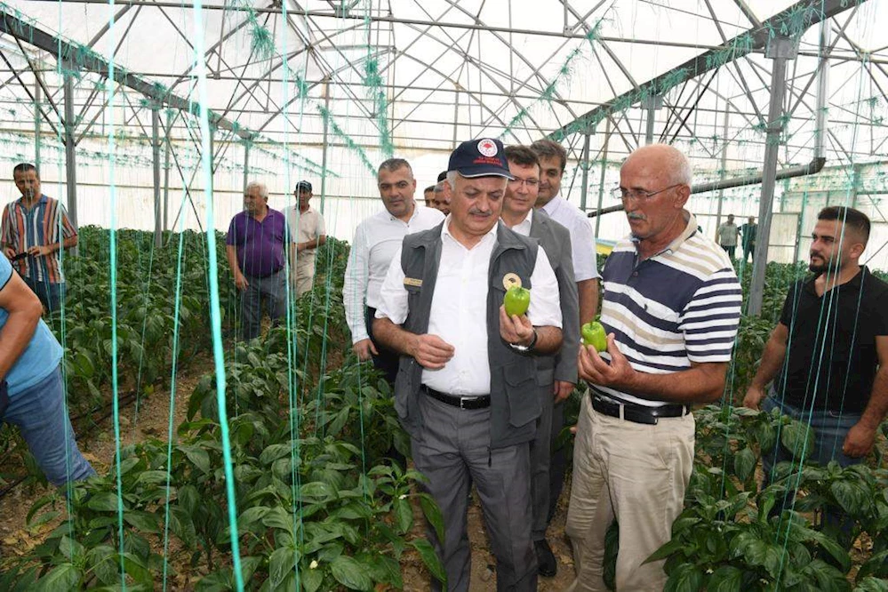Seracı Hakan ve Ünal Yıldız’ın 24 dönümlük domates ve biber seralarını gezen Vali Yazıcı, üretime katkı sunan çiftçilerin her zaman yanında olduğunu dile getirdi.