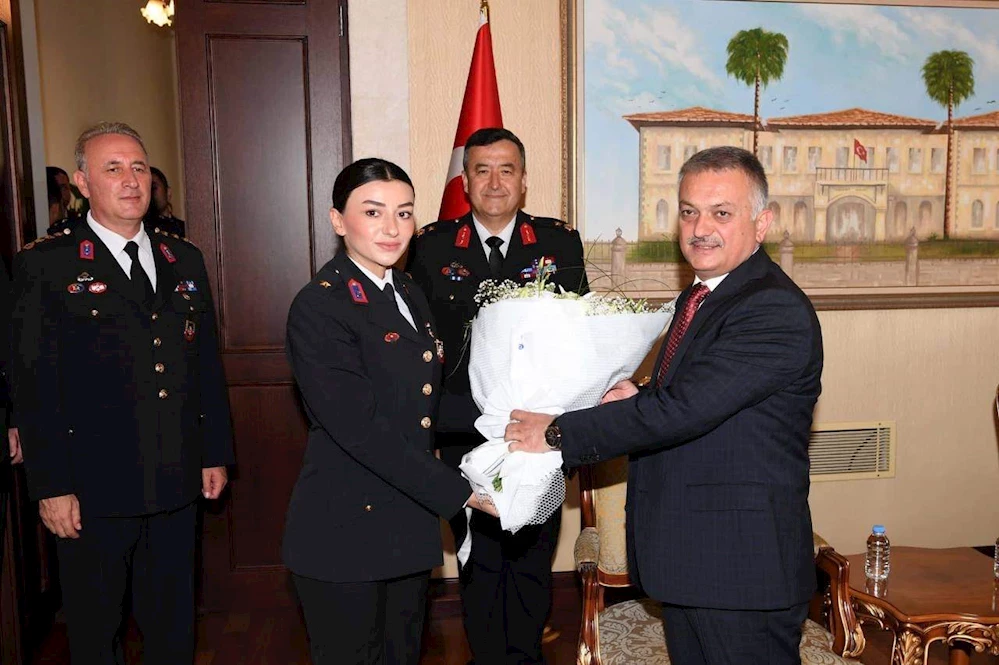 Jandarma Teşkilatının 183’üncü kuruluş yıl dönümü kutlama etkinlikleri kapsamında, Antalya Valisi Ersin Yazıcı, İl Jandarma Komutanı Tuğgeneral Yavuz Özfidan ve beraberindeki heyeti makamında kabul etti. Vali Yazıcı ziyarette “Jandarma Teşkilatımız 183 yıldır milletimizin huzuru ve bekası için fedakârca hizmet etmeye devam ediyor.” dedi.