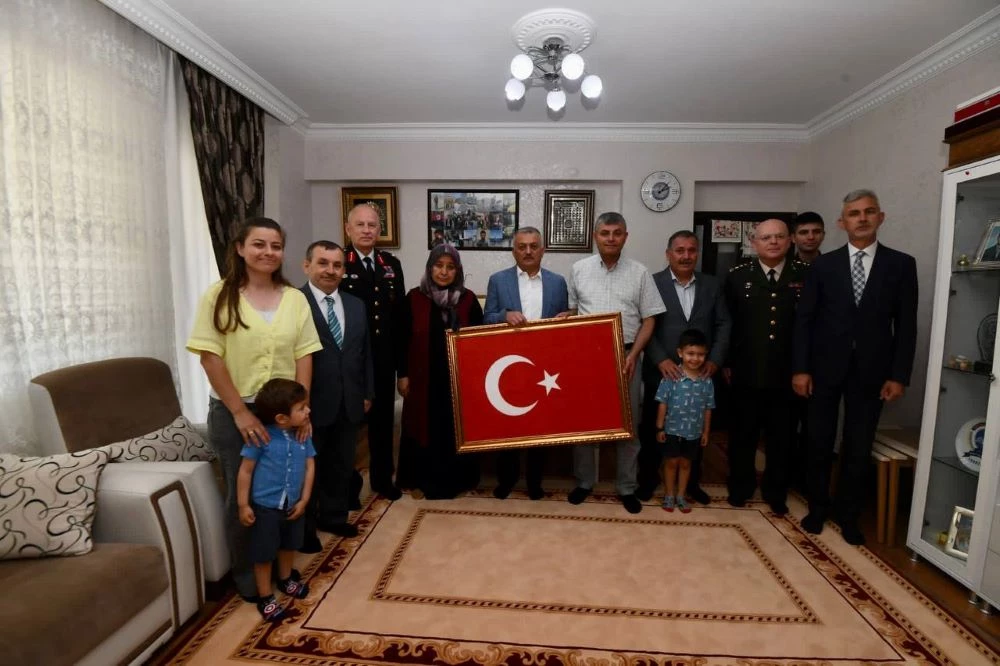 Vali Yazıcı şehit aileleri ile sohbetin ardından ailelere Türk Bayrağı hediye ederek hatıra fotoğrafı çektirdi.