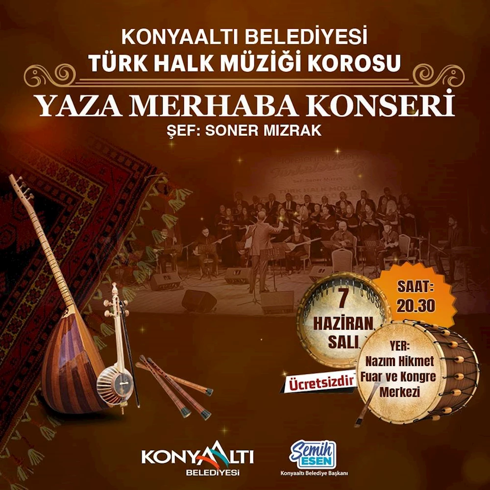 Konyaaltı Belediyesi Türk Halk Müziği Korosu ‘Yaza Merhaba Konseri’ ile 7 Haziran Salı günü saat 20.30’da Nazım Hikmet Fuar ve Kongre Merkezi’nde sahnede olacak.