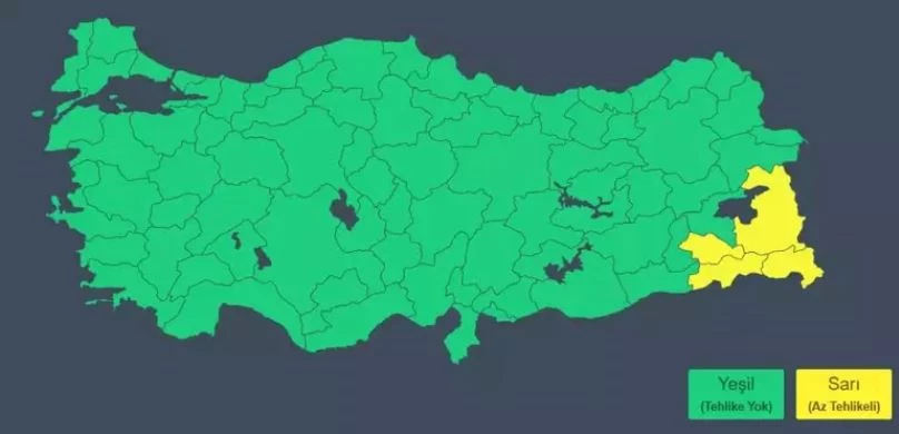 Meteoroloji Genel Müdürlüğü bugün Doğu Anadolu Bölgesi'ndeki 4 il için sarı kodlu alarm verdi. Kuvvetli kar yağışı uyarısının yapıldığı iller sırasıyla Hakkari, Van, Şırnak ve Siirt oldu.