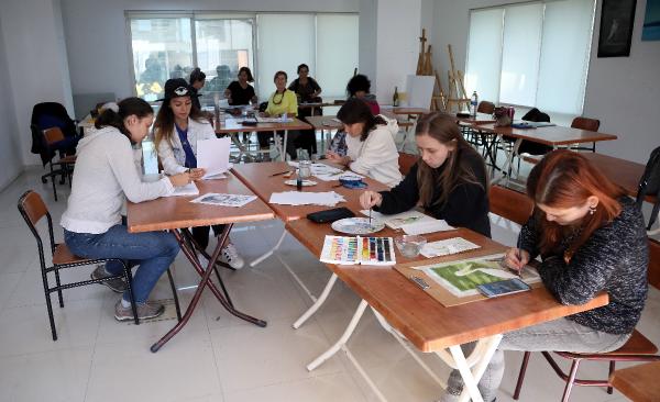 Antalya'da yaşayan yerleşik yabancılar, resim kursunda buluşuyor. Yağlı boya, sulu boya ve kara kalem resim eğitimi alan yerleşik yabancı kadınlar, farklı branşlardaki kurslarda da zaman geçirip bilgi ve el becerilerini artırıyor.