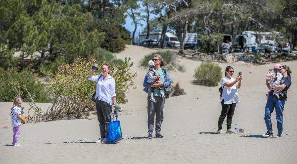 Plajı ziyarete gelen Emine Özge, yakınlarını Patara kum tepelerini görmeleri için getirdiğini ifade etti. İncecik kumların rüzgarla hareket ettiğini gördüğünü belirten Özge, “Böyle bir manzara başka yerde yok. Çıplak ayakla yürüyüp stres atıyoruz. Karavanla gelseydim keşke. En azından gece de görürdük nasıl göründüğünü' dedi.