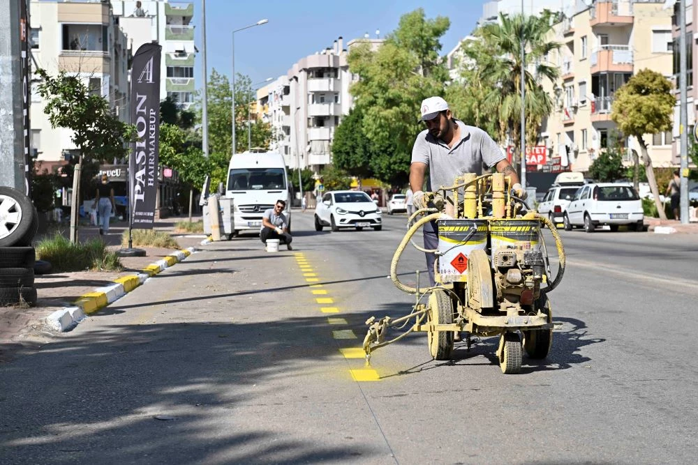 Antalya’da Muratpaşa Belediyesi yaya ve sürücülerin güvenliğini sağlamak için cadde ve sokaklarda trafik çizgilerini yenileme çalışmalarına devam ediyor.