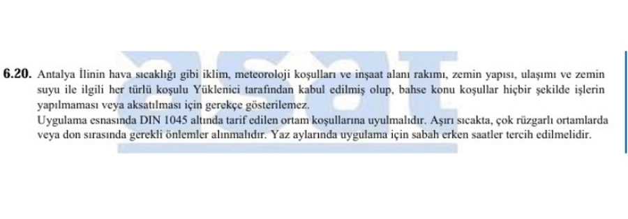 Teknik şartnameye göre 180 gün içinde tamamlanması gereken YSE içme suyu tesisinin, sözleşmenin imzalanmasından aylar sonra hala bitirilemediği görüldü. Normal şartlarda 2025 Temmuz ayında tamamlanması gereken iş, verilen ek sürelere rağmen sonuçlandırılamadı. İhale sonrasında yüzde 19,87 oranında iş artışı yapıldığı gerekçesiyle yüklenici firmaya 35 gün ek süre tanındı. Teknik şartnamenin 6.20. maddesinde "Antalya'nın iklim koşulları işin aksaması için gerekçe gösterilemez" ifadesi yer alırken, ASAT Yönetim Kurulunun 2025/506 ve 2025/523 sayılı kararlarında "yaz sezonunda su kesintisine izin verilmemesi" gerekçesiyle 90 gün ek süre tanındığı tespit edildi. İşin fiili süresi ise 350 güne ulaşmasına rağmen söz konusu projenin yapımı hala bitirilemedi.