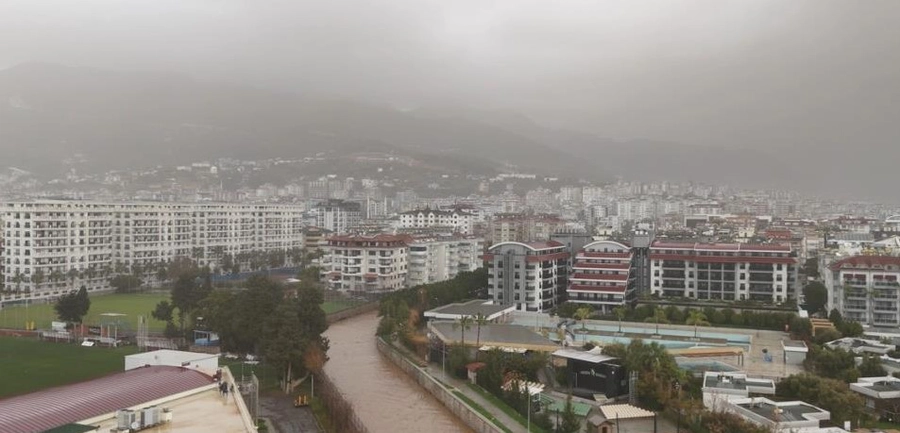 Alanya'da öğle saatlerinden itibaren etkili olan toz taşınımı, sağanak yağışla birlikte ilçe genelinde hayatı olumsuz etkiledi. Yağışın ardından bazı mahallelerde çamur yağarken, derelerden denize taşınan sular sahil kesiminde denizin rengini kahverengiye çevirdi.