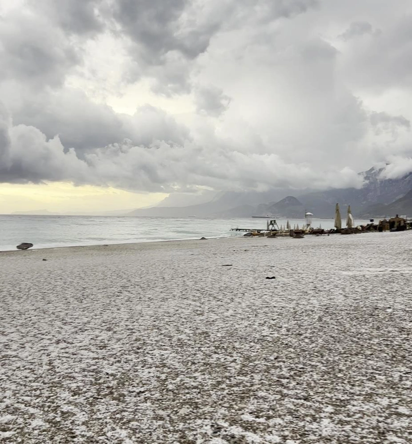 Antalya'da aniden bastıran yağmur, dolu ve fırtına kent sakinlerine adeta kabusu yaşattı. Yağan dolu dünyaca ünlü Konyaaltı Sahili beyaza bürüdü.