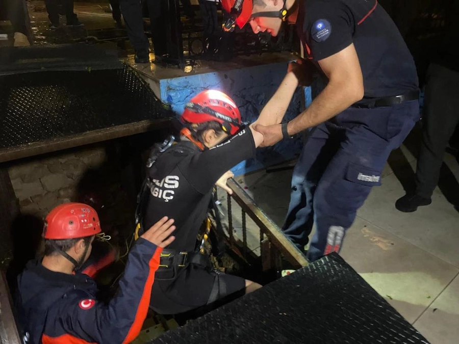 RESTORANIN BAHÇESİNDEKİ MERDİVENLİ GEÇİTTEN KURTARILDI