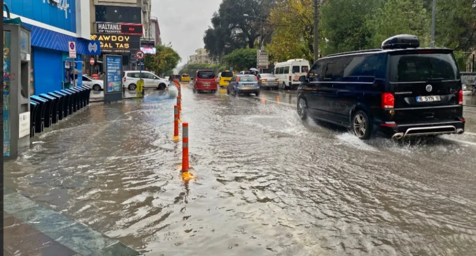 Meteoroloji 4. Bölge Müdürlüğünün sarı kod uyarında bulunduğu Antalya'da, dün öğle saatlerinde başlayan şiddetli rüzgar ve sağanak, olumsuzluklara neden oldu. Sağanak nedeniyle bazı vatandaşlar dükkan brandalarının altına sığınarak yağmurun dinmesini beklerken bazı vatandaşlar ise şemsiye ile koşarak ilerlemeye çalıştı. Şiddetli rüzgar nedeniyle zaman zaman vatandaşlar zor anlar yaşadı. Bazı noktalarda ise çöp konteynerlerinin devrildiği görüldü. Yağışın artması ile bazı cadde ve sokaklarda su birikintisi oluşurken araçların su birikintisi nedeniyle yavaşladığı görüldü.