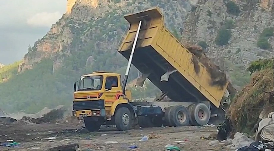 FİNİKE BELEDİYESİ ATIKLARI AÇIK ALANA DÖKTÜ