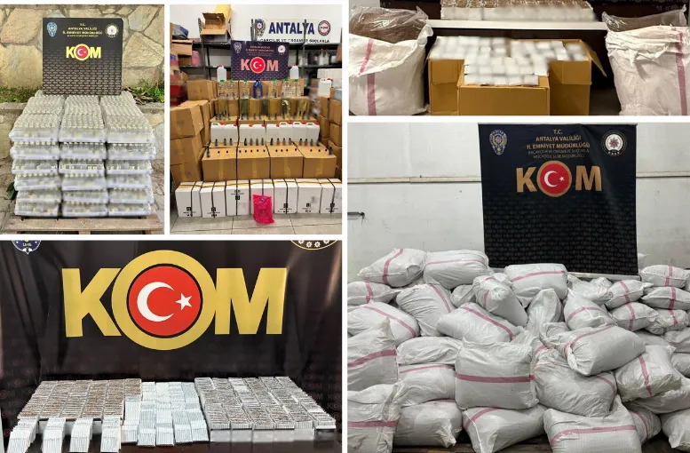 Kepez, Konyaaltı, Aksu, Muratpaşa, Alanya ve Manavgat ilçelerinde yürütülen operasyonlarda 39.440 adet makaron, 20.245 kilogram gıda, 3.792 şişe ve 1.938 litre içki, 2.418 kilogram tütün, 212 paket sigara ve 38 adet elektronik sigara ele geçirildi.
