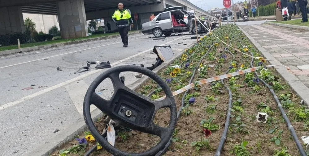 Güvenlik kamerasına saniye saniyesine yansıyan feci kazada, hurdaya dönen TOFAŞ marka otomobilin parçaları etrafa saçıldı. Otomobilin direksiyonu otomobilin bulunduğu yerden 15 metre, ön kaputu 20, aküsü ise 130 metre uzaklıkta bulundu.