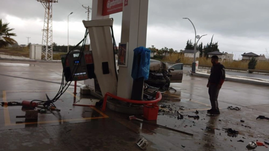 Antalya'da D-400 kara yolunda seyir halindeki otomobil akaryakıt istasyonuna daldı. Otomobil, yakıt alan bir başka araca çarpıp yakıt pompasını parçalarken, pompa görevlisi aracın altında kalmaktan saniyelerle kurtuldu.