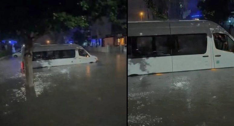 Antalya’da etkili olan sağanak yağış nedeniyle Konyaaltı ilçesi Liman Mahallesi’nde içinde öğrencilerin bulunduğu bir servis aracı suya gömülerek mahsur kaldı.