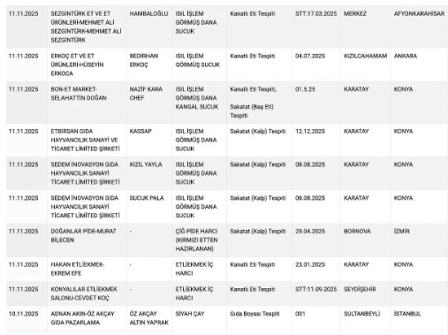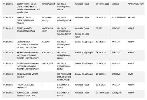 Gıdada hilenin yaptığı kentler: Afyonkarahisar, Ankara, Konya, İzmir, İstanbul oldu.