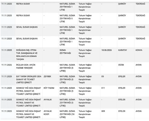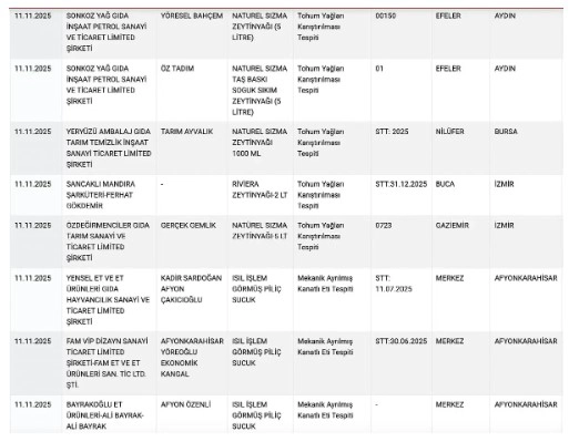 Gıdada hile yapılan kentler: Afyonkarahisar, Ankara, Konya, İzmir.