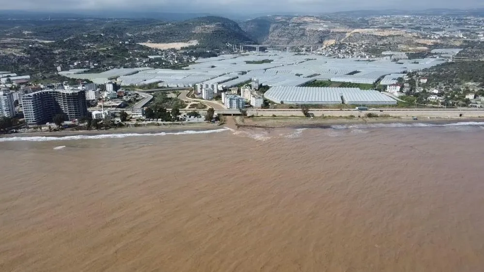 Mersin'de yağışlarla birlikte coşan dereler Akdeniz'i çamura bürürken, bölge havadan görüntülendi.