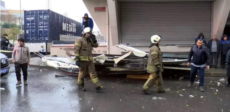 Şiddetli rüzgar İstanbul'da sabah saatlerinde itibaren etkisini gösterdi. Güngören'de de rüzgar nedeniyle 5 katlı iş merkezinin çatısından kopan parçalar karşı binaya çarptı.Ardından sokakta park halinde bulunan 3 otomobilin üzerine düştü. Sokakta yürüyen bir kişinin düşen çatının altında kalmaktan saniyelerle kurtulurken çatının otomobillerin üzerine düşmesi iş yerinin güvenlik kamerasına yansıdı.İhbar üzerine olay yerine polis ve itfaiye ekipleri sevk edildi. Güvenlik gerekçesiyle sokak trafiğe kapatılırken itfaiye ekipleri otomobillerin üzerine düşen çatı parçalarını yol kenarına aldı.