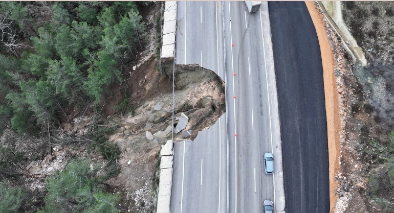Kemer ile Kumluca ilçelerini birbirine bağlayan kara yolunda göçük ve heyelan meydana geldi. Yolda oluşan yaklaşık 10 metrelik çukur nedeniyle bölgede ulaşım tek şeritten sağlanıyor.