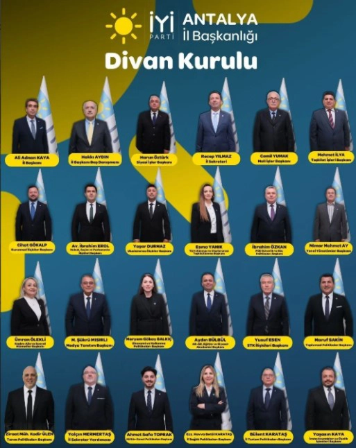 İYİ Parti Antalya İl Başkanlığı tarafından yapılan açıklamaya göre İl Divan Kurulu şu isimlerden oluştu:
