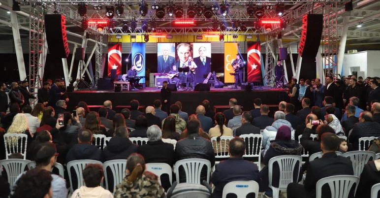Coşku dolu gecede, Ülkü Ocakları Genel Merkez sanatçıları Osman Öztunç ve Alperen Kekilli, seslendirdikleri eserlerle programa katılanlardan büyük ilgi gördü.