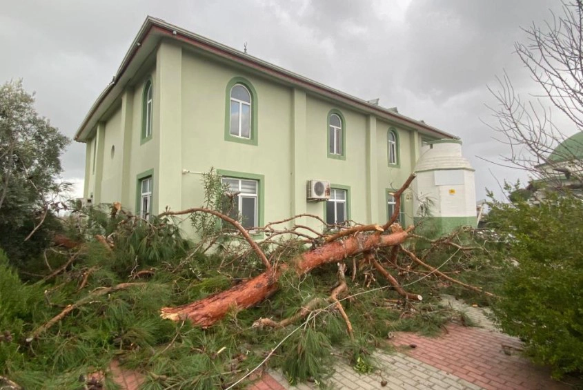 CAMİ MİNARESİ YIKILDI, AĞAÇLAR KÖKÜNDEN SÖKÜLDÜ