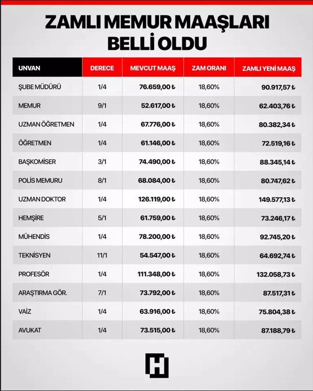 Bu artışlar neticesinde 2025 yılı temmuz dönemi itibarıyla bazı kamu görevlilerinin net görev aylığı şöyle belirlendi: